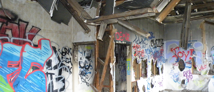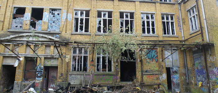 Gebäudeinnenaufnahme von zwei ehemaligen Fabrikgebäuden
